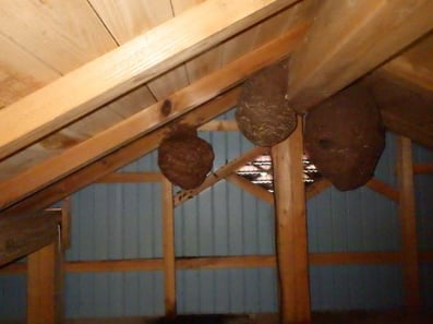 ふだん目につかない屋根裏や物置は、スズメバチにとっては格好の営巣場所です。